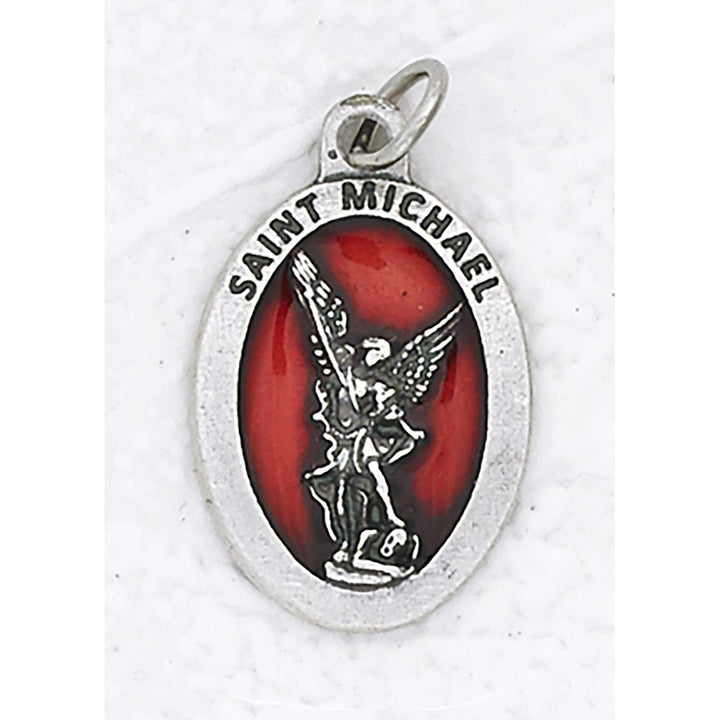 1" Oval Saint Michael Red Enameled Medal
