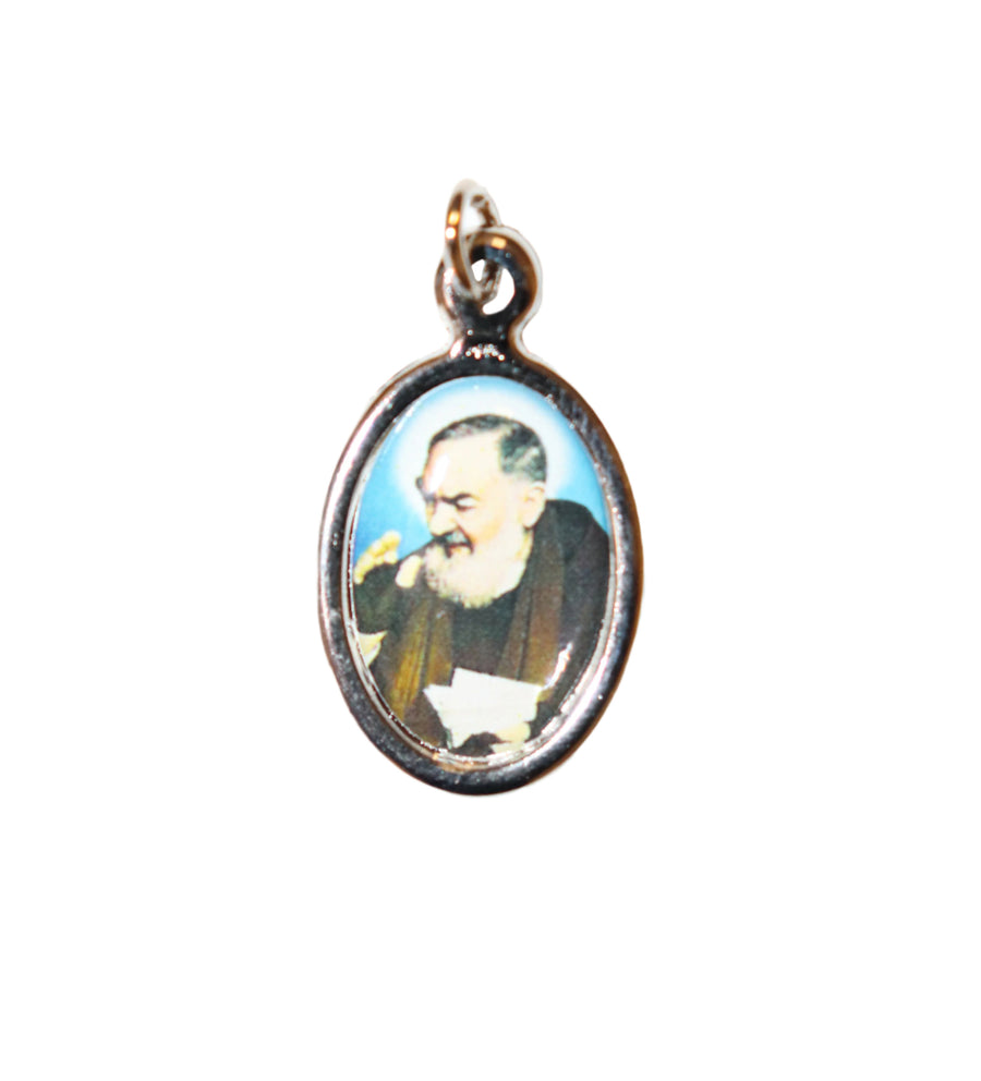 St. Padre Pio Colored Image Set in Silver Colored Metal Medallion