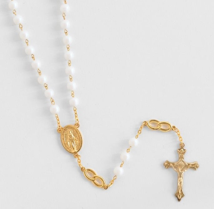 8mm White Bridal Rosary with Wedding Rings